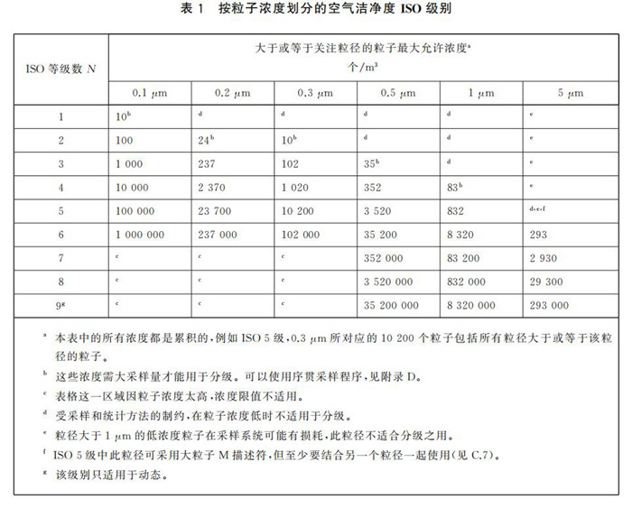 ISO 14644-1:2015“潔凈室及相關受控環境 第1部分:按粒子濃度劃分空氣潔凈度等級”中將空氣潔凈度劃分為以下幾個等級: